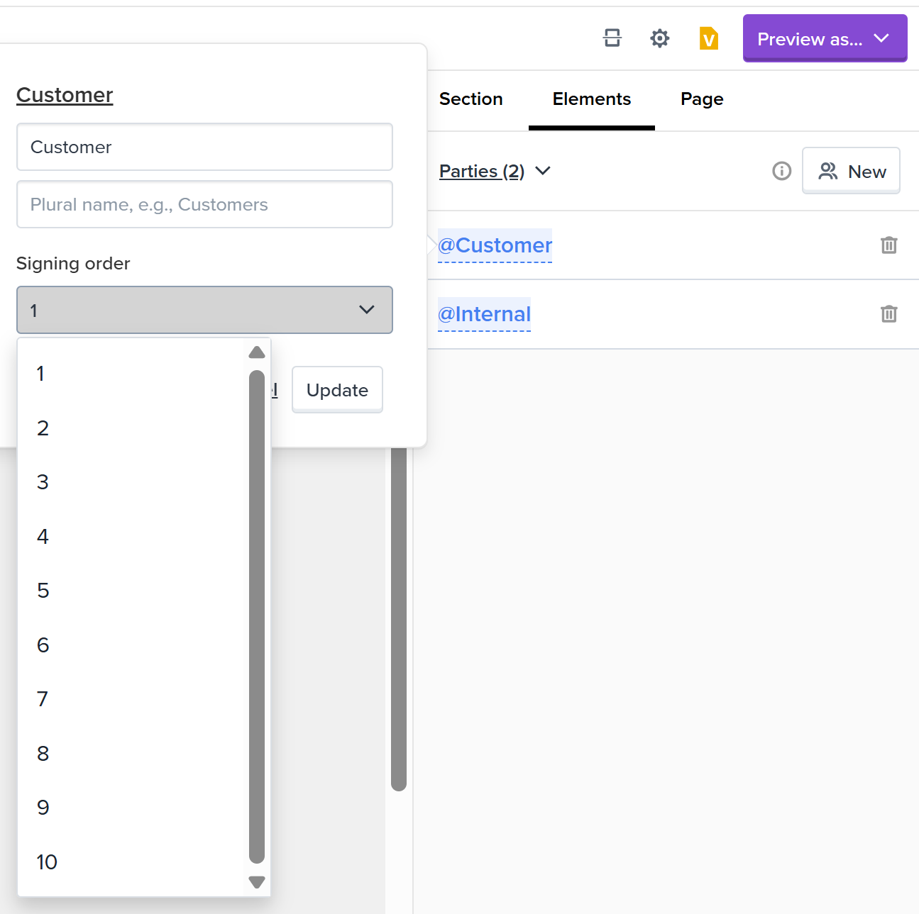 Then, navigate to the Elements > Parties tab, and set the signing order of the parties: